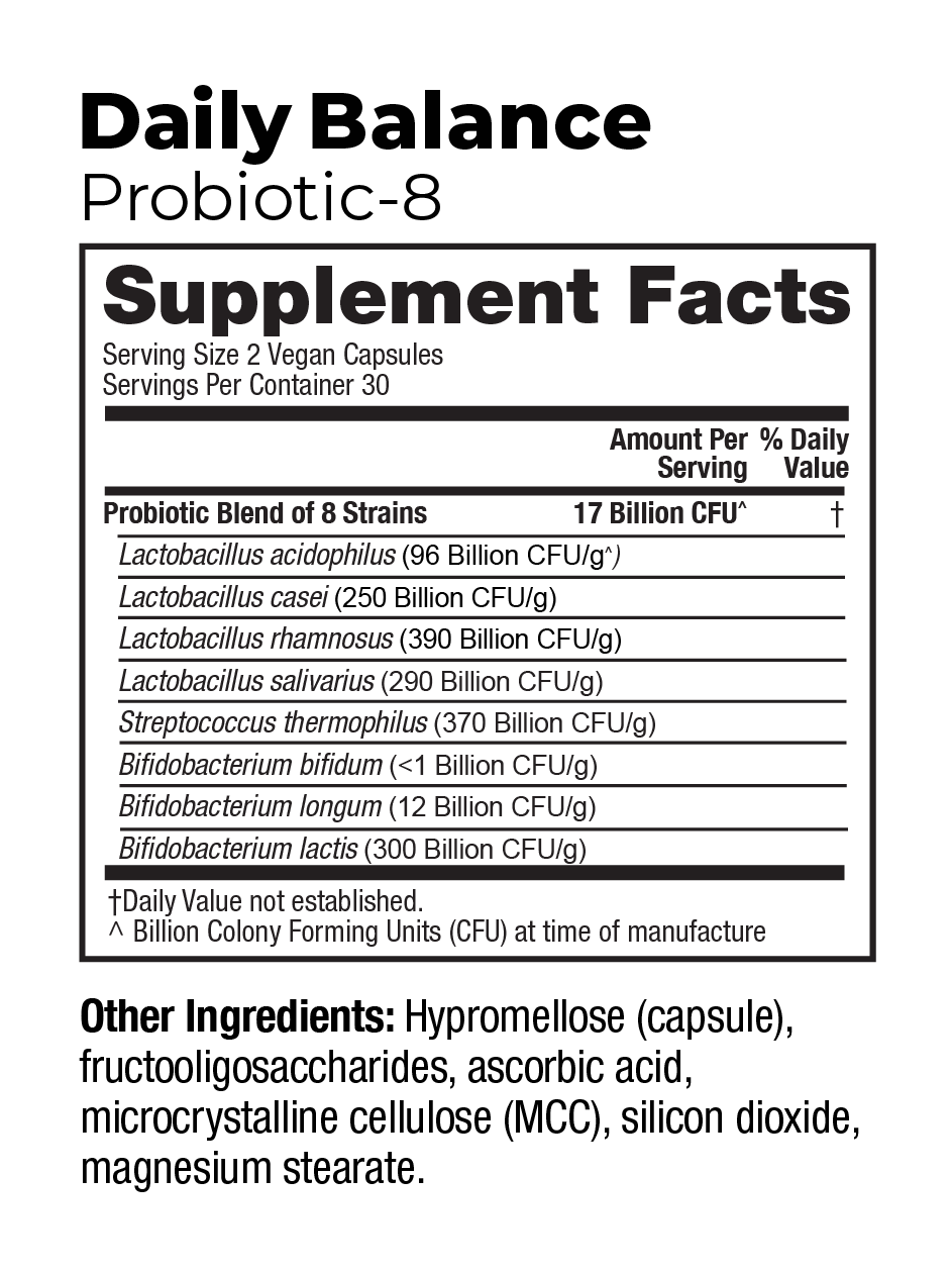 Daily Balance Probiotic-8: Synbiotic for Balanced Gut & Skin Microbiome