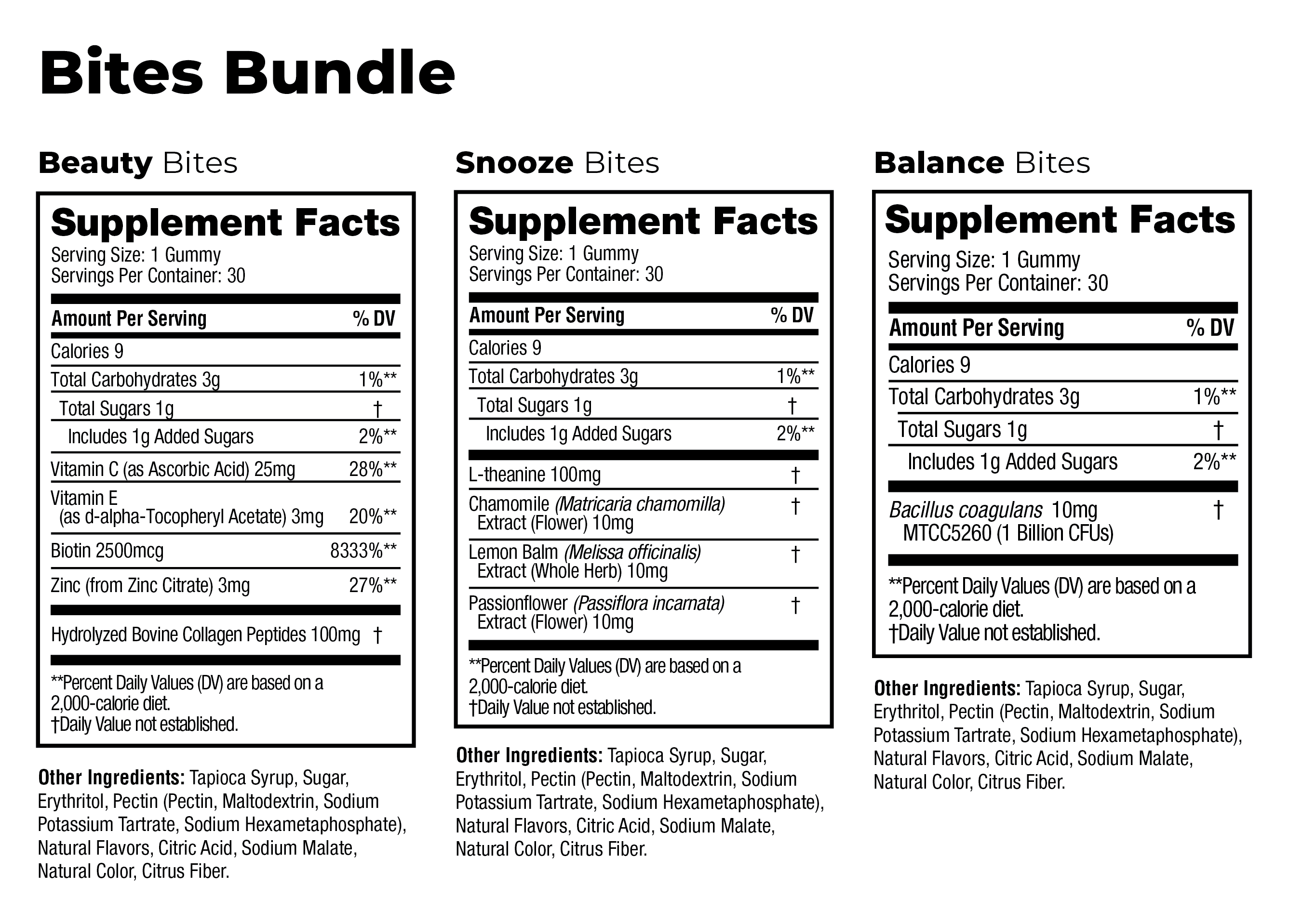 Balance Bites: Adults, as a dietary supplement, take 1 gummy daily.