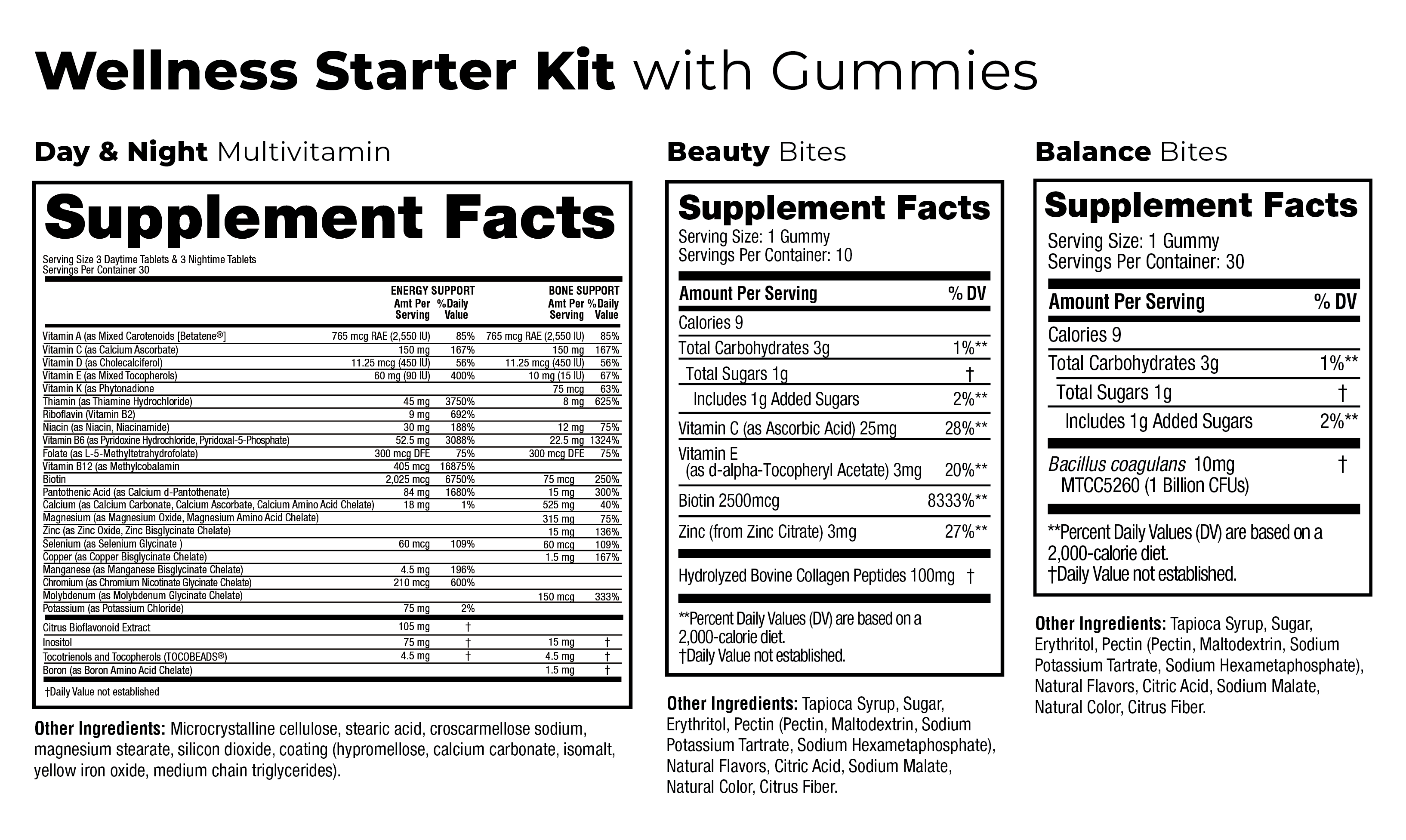 Starter kit exclusive: For a limited time, enjoy a free sample of Beauty Bites gummy supplements with the purchase of your kit. Expertly formulated for more radiant skin, healthier hair, and stronger nails in every bite.*