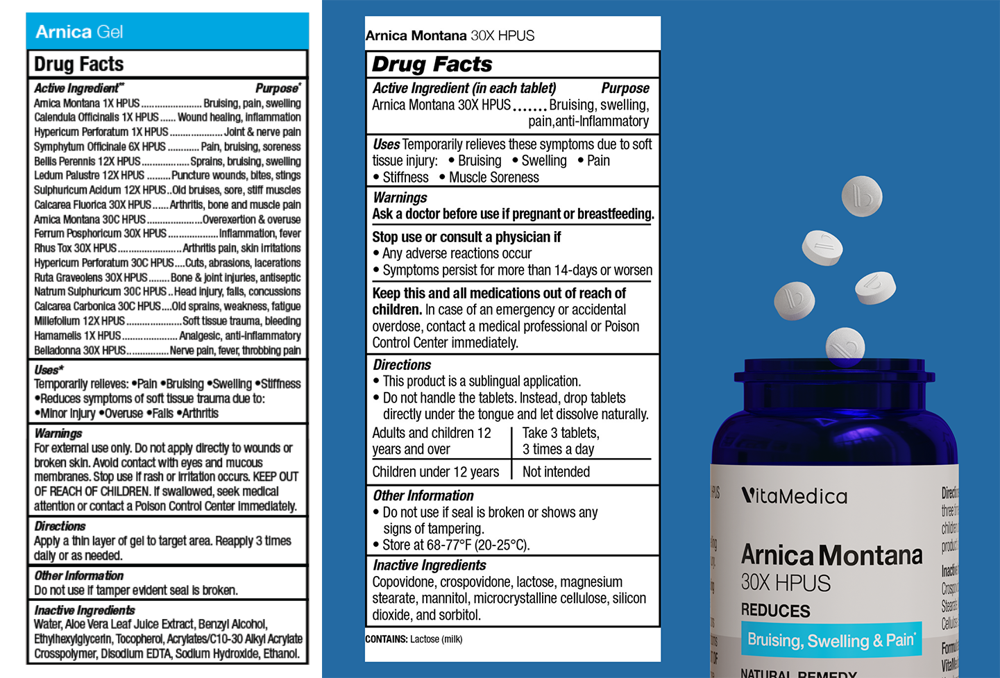 Directions Arnica Gel: Apply a thin layer of gel to target area. Reapply 3 times daily or as needed.