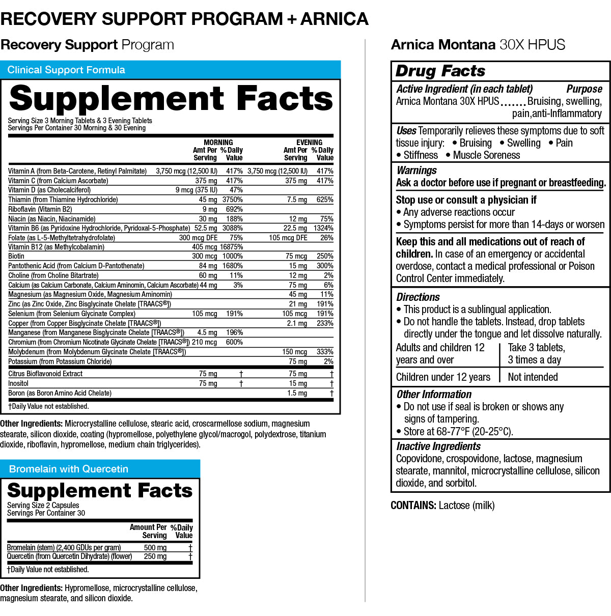 - Program includes: Clinical Support Morning, Clinical Support Evening, Bromelain with Quercetin, and Arnica Montana 30X HPUS